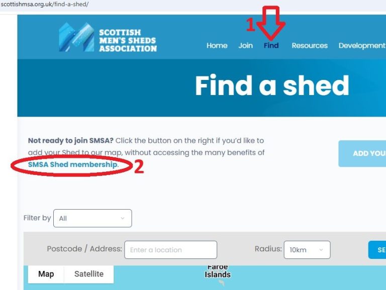 Log in to SMSA - go to Find a Shed